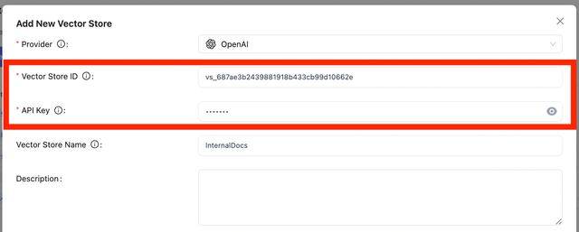 - Navigate to Tools > Vector Stores > "Add new vector store"